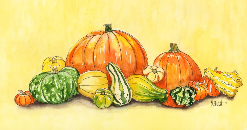 It’s Decorative Gourd season, and I should be coming up with a great list of scary reads to share with you. But…I’m going to be exceedingly lazy here and post a link to last year’s book recommendations for the spookily inclined. I am not a horror reader and, although I do like a good ghost story, I haven’t read any new ones this past year except for Wyrd Sisters and Mort, by Terry Pratchett and, while they do have a resident ghost or two (not to mention Death) as characters, they aren’t exactly fright-inducing! So if you haven’t read any of last years’s selection, try one, and if you have, you could always suggest one to me! Be convincing about its merits and I might post it!